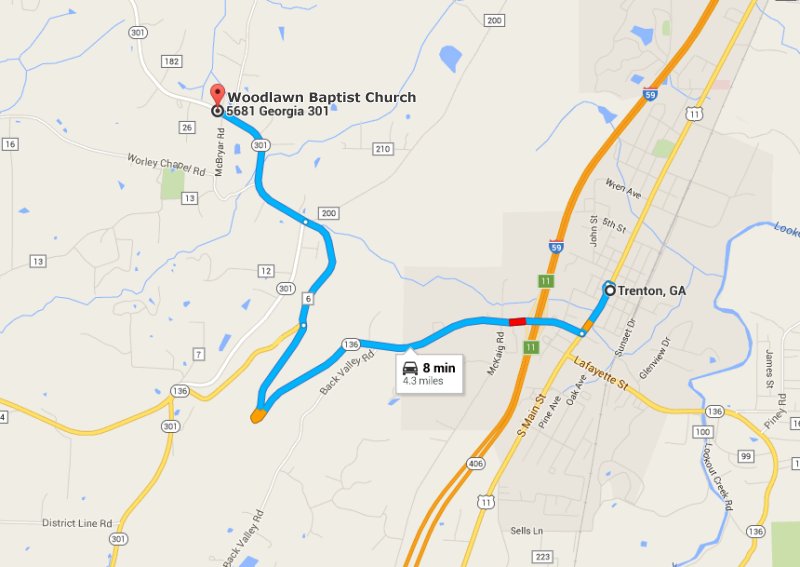 Woodlawn Baptist Church will be on the right just before Davis Elementary School